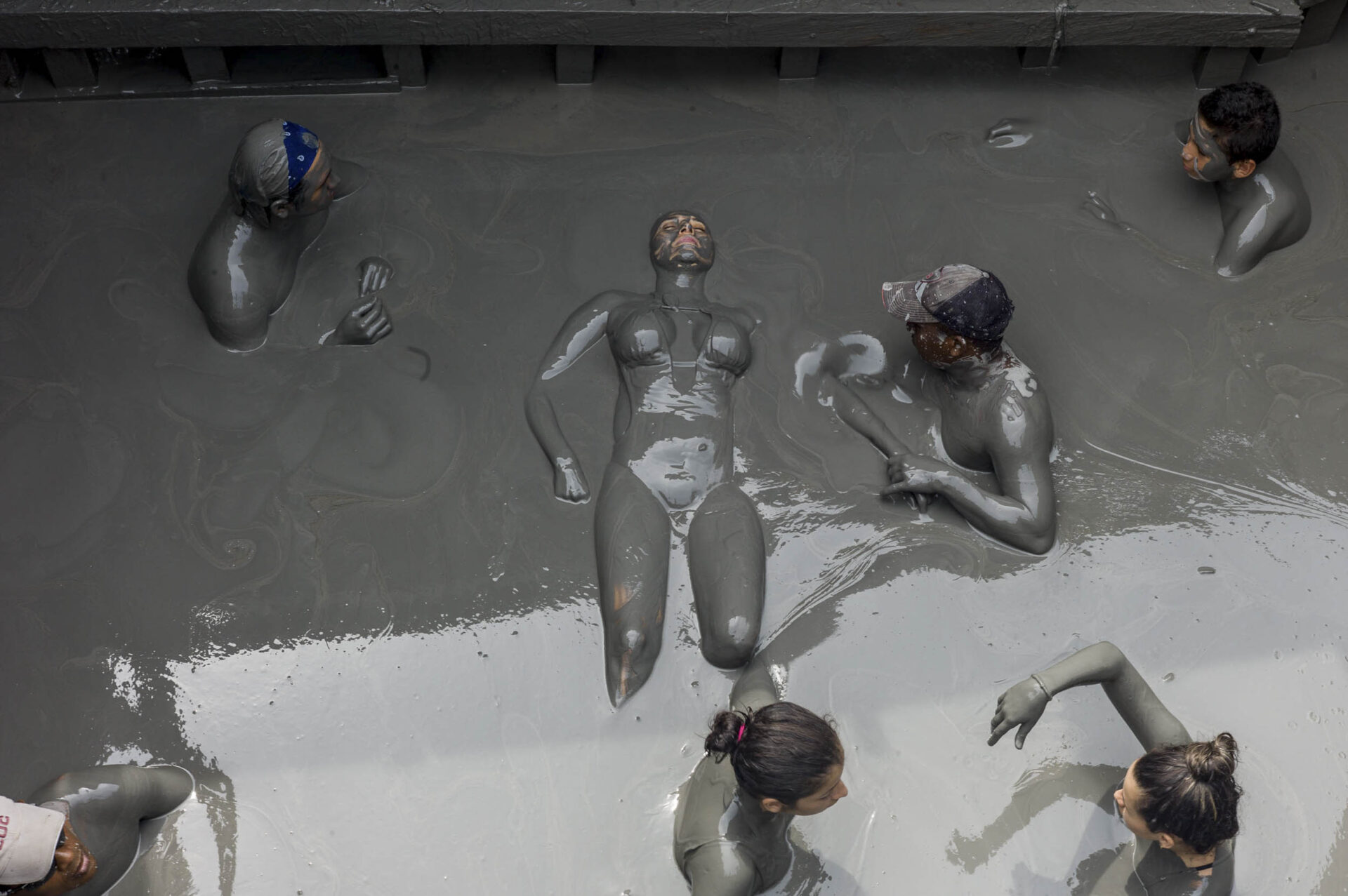 A tourist gets a massage at the Volcan de Lodo El Totumo. Located about 50-kilometers from Cartagena, this mud volcano bubbles bath-temperature water, 2014
