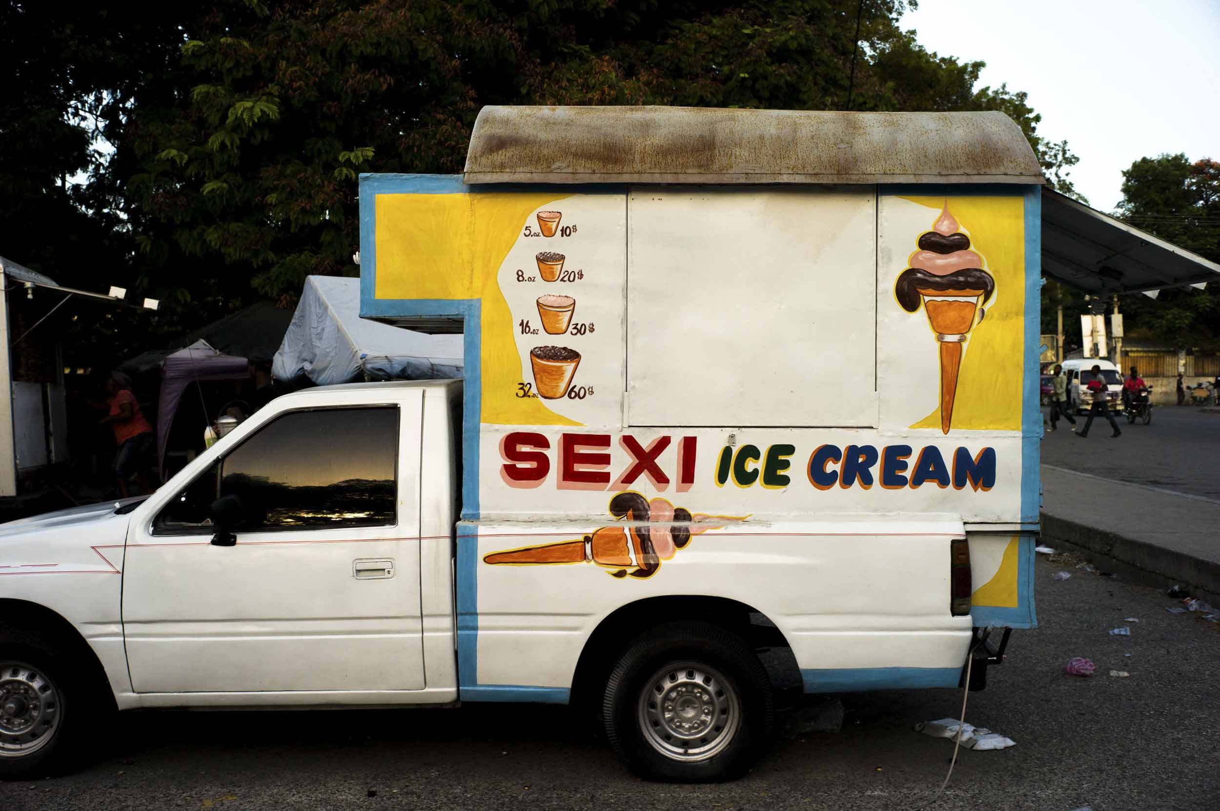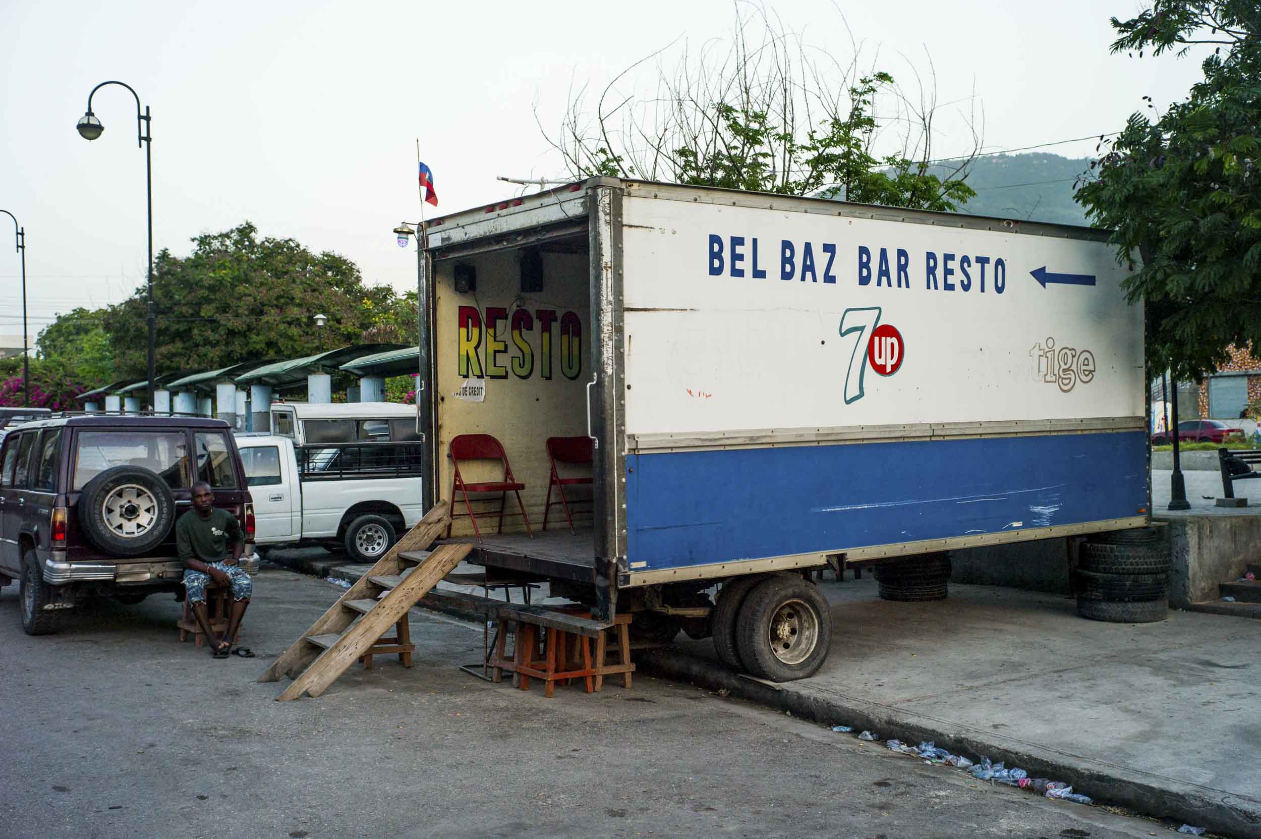 A truck laden with fresh mangos, central Port-au-Prince, 2016